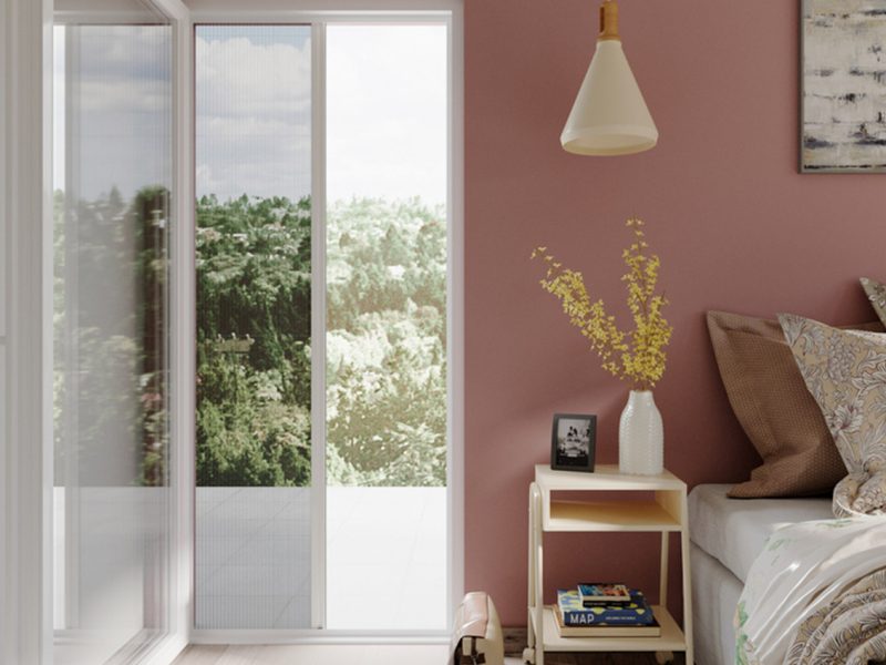 Les portes coulissantes permettent d’accéder librement au balcon et à la terrasse, et séduisent grâce à leur facilité d’utilisation. Si vous le souhaitez, un ferme-porte automatisé est également possible. Il est possible de faire coulisser la moustiquaire pour toujours la placer là où vous en avez besoin. Les surfaces de toiles larges et harmonieuses offrent une vue dégagée sur l’extérieur et assurent un confort exclusif.